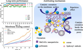 標題:A novel catalytic membrane integrated with ozone process for secondary wastewater treatment: Micropollutant removal, membrane fouling control, and its mechanisms